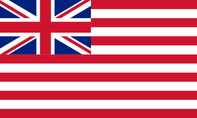 Brittiska Ostindiska Kompaniets flagga. Fick strykas efter sepoy-upproret 1857 i.o.m. att brittiska Kronan övertog administrationen av Indien?????