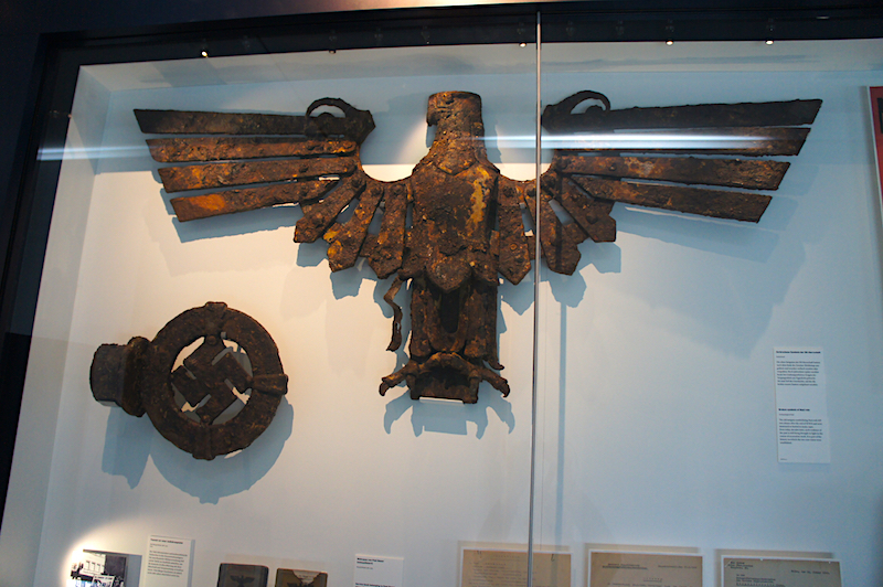 Ja, här har vi förgrunden en brännkammare från en A-4, eller "Vergeltungswaffe, V-2" och bakom är en fisk från Schweriner See, en amerikansk P-51D "Mustang" vinge, upptagen 1969