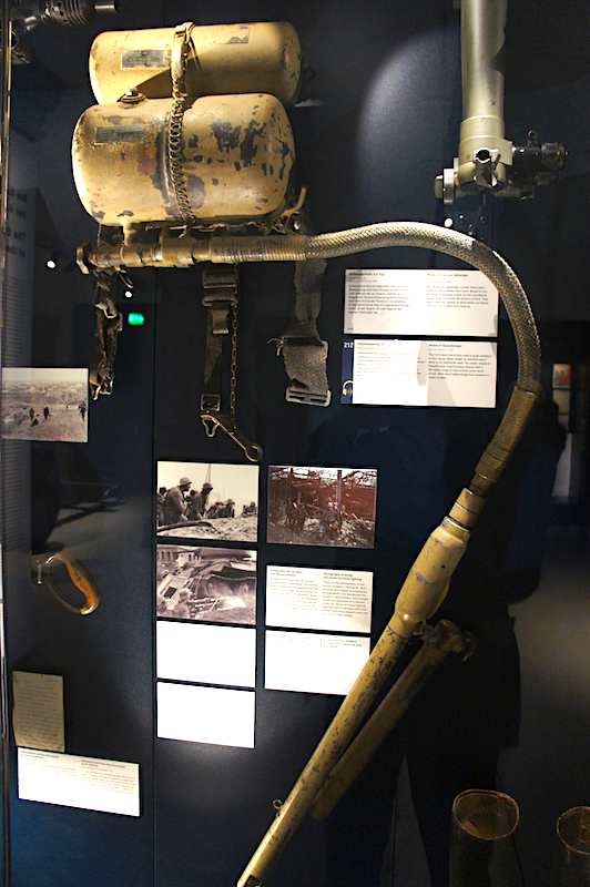 Behållaren för Flammenwerfer 41 tog sju liter olja - sprutade eld och förödelse 30 meter långt...