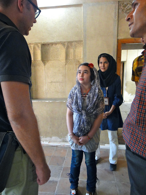 Nej, det blev engelska. Ett fåtal behärskade det excellent, de flesta emellertid kunde så mycket engelska som vi farsi. Viljan och lusten att förmedla dessa par engelska ord var emellertid överväldigande - varje dag i varje iranskt hörn blev vi indragna i "samtal" med befolkningen, och stor var deras glädje för varje engelsk minut! Som t.ex. den här lilla tösen som föräldrarna föste fram till oss. Hon "kunde" nämligen engelska, i alla fall fyra ord, "where are you from"...Andäktigt hängde hon på varje ord vi yttrade!
