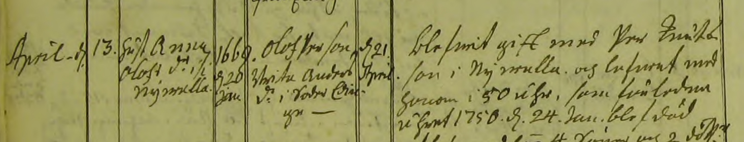 blefwit gift med Per ...son i Nywalla. och lefwat med honom i 50 åhr, som ...ledne åhret 1750. d. 24. Jan. blef död...