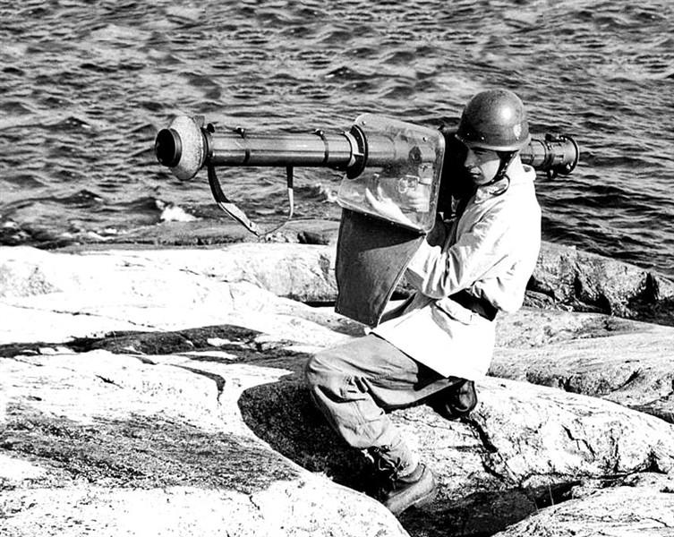 Raketgevär m/51 kaminröret. Att rikta lvksp m/36 lvdbl krävde inga krafter.