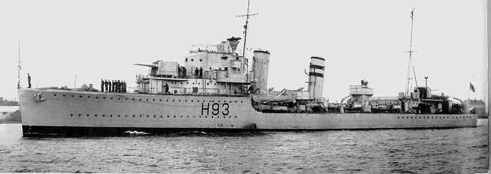 Jag kände inte igen fartyg nr 3 - jag är rätt dålig på sådant - men jag ser nu att dess beteckning är H 93, och den känner jag igen. Det är jagaren HMS Hereward, som förde den nederländska drottningen Vilhelmina till Storbritannien.
