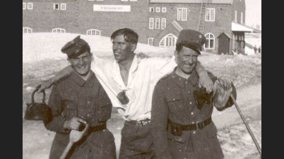 Major Eric Söderpalm, i mitten på det nedre fotot och i stram givakt, var i maj 1945 chef för en styrka av bataljonsstorlek ur fältregementet I 33 och förlagda i Eda. Det fanns gott om rykten att Sverige skulle gå in i Norge och avväpna de tyska styrkorna där om inte de kapitulerade frivilligt.
