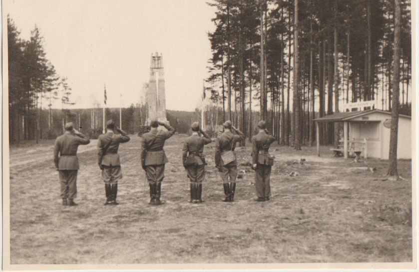 Tjugo minuter senare hälsades de båda ländernas flaggor vid fredsmonumentet. I centrum stod Söderpalm flankerad av sina adjutanter. Manskapet representerades av stabens bilförare längst till vänster och underofficerarna av sergeant Odrup, chef för tunga plutonen längst till höger.