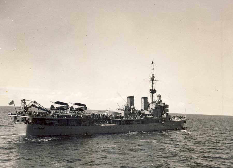 Wilkins ubåt döptes till Nautilius och i samband med motorhaveri bogserades den av USS Wyoming (på bilden ombyggt till artilleriträningsfartyg i slutet på VK2).