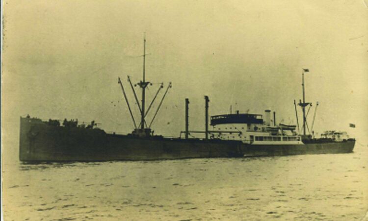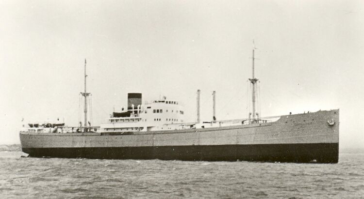 ....frågans fatyg låg i Narviks hamn väntande på malmlast - när tyskarna kom. Skadades - övergavs av besättningen - och sjönk