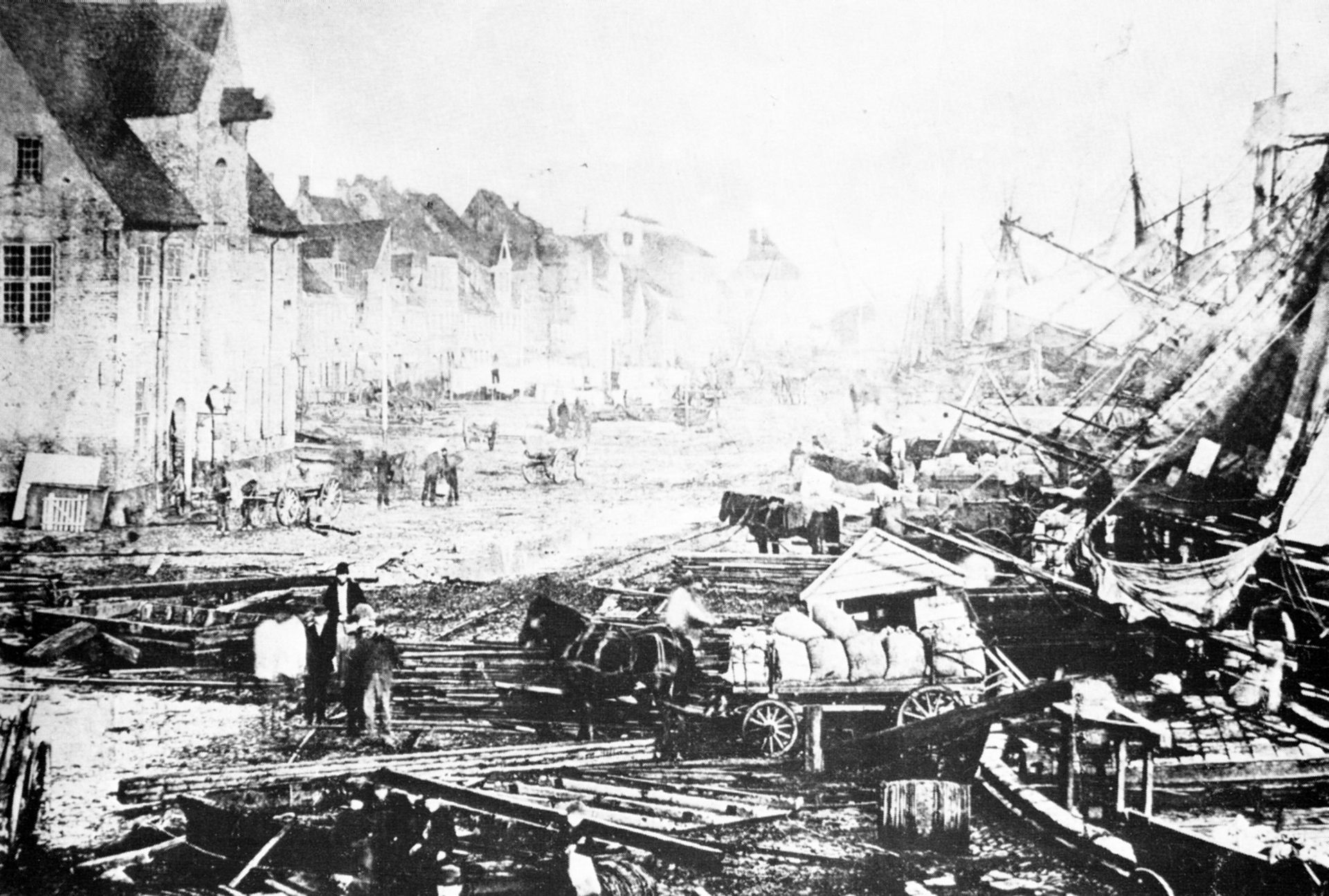 Hmmm....den förstörda hamnen skulle kunna vara Bergen i Norge - men längre kommer jag inte