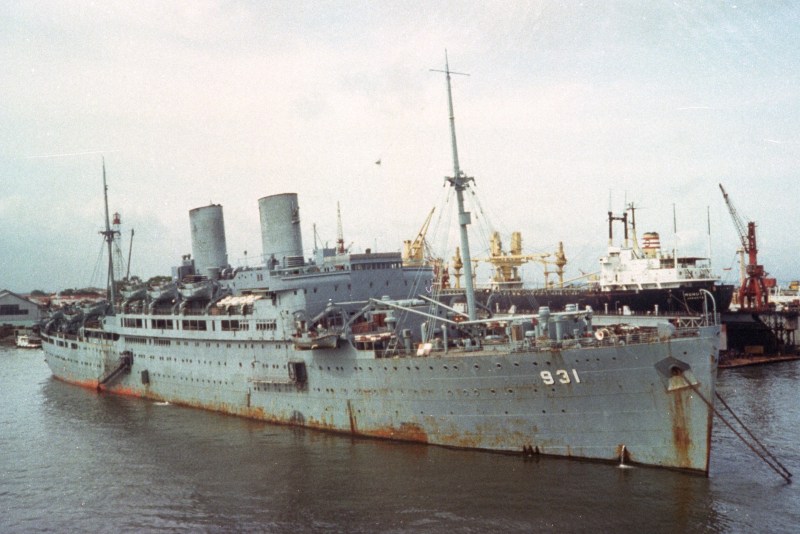 Denna gamla ångturbindrivna passagerabåt har en lång och brokig historia, hon har fraktat sårade och flyktingar, hon har fraktat soldater, hon har fraktat pilgrimer på väg till Mecka, och det här är det senaste fotot jag hittar innan hon höggs upp 1987.