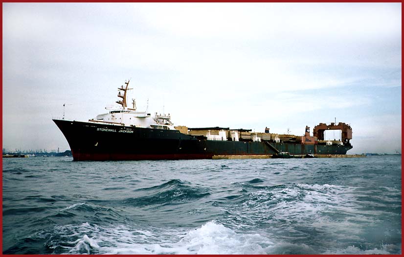 Prototypen - skall enligt uppgifter ha bestått av FEM delar (?) - och var säkert betydligt mindre, än den fantasifulle tecknaren lämnatAn old engraving of the Jointed Iron Steam-ship Connector, from the Illustrated London News, August 1863. The idea behind this invention was that the centre section of this ship could be left in port, loading or unloading, whilst the rest of the vessel went elsewhere. A prototype was constructed, aboard which the Illustrated London News correspondent travelled along the Thames from Blackwall to Erith Reach. The correspondent said Though the water was much disturbed the trip was very interesting and gave general satisfaction.