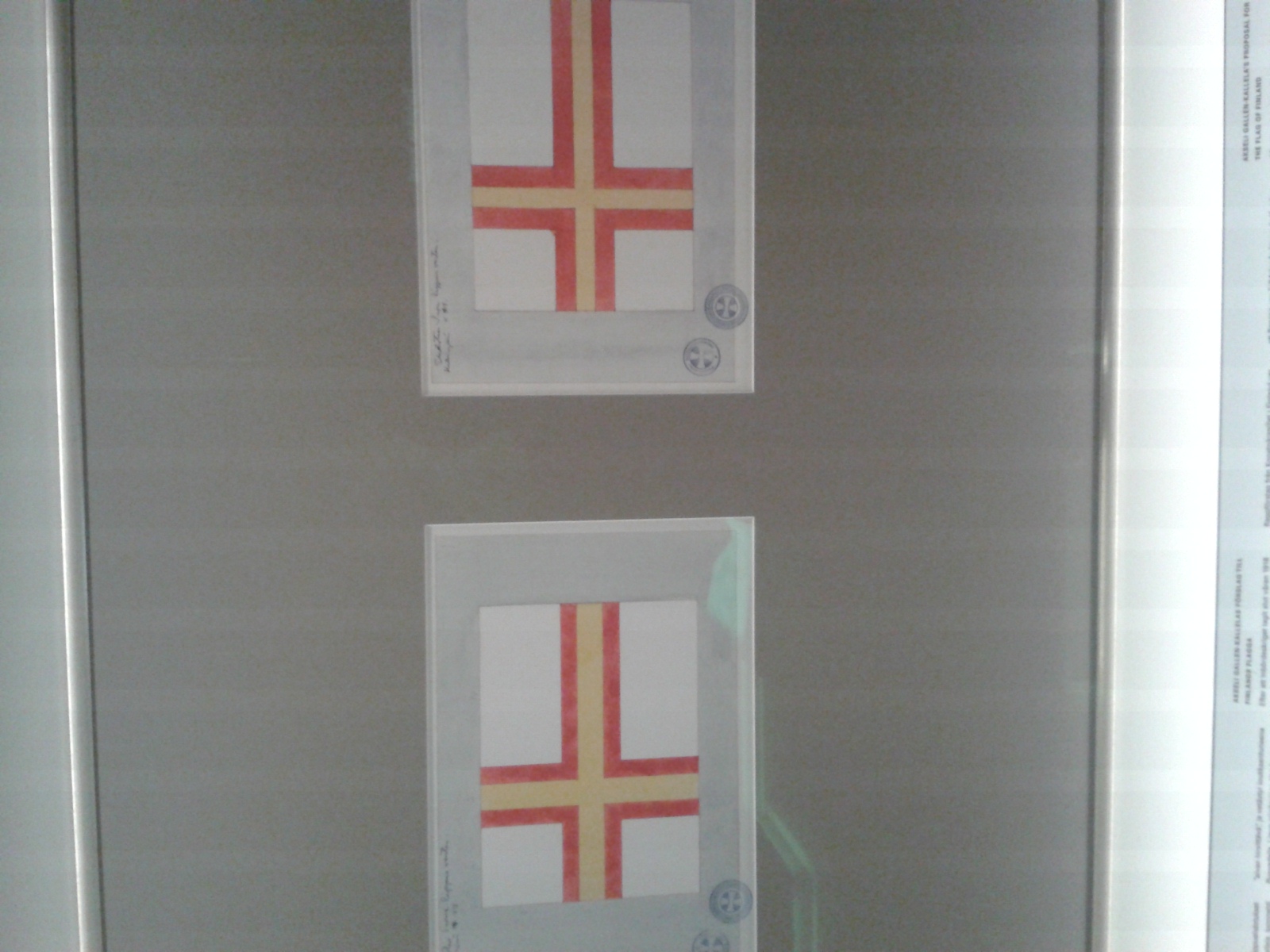 Som vi ser i bilden ovan så finns flaggan inte bara som inramade skisser i en utställning. Men som vi vet blev Akseli Gallen-Kallelas förslag med färgerna från lejonvapnet inte valda och Gallen-Kallela blev inte bara sur utan deprimerad år 1918.