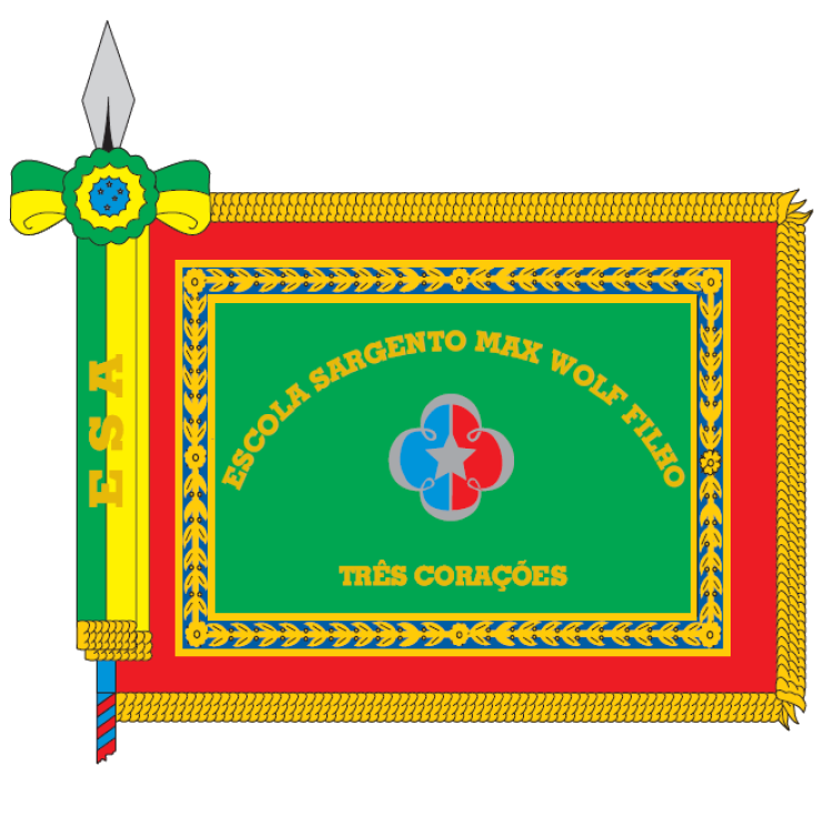 1. motoriserade infanteribataljonens historiska fana. Bataljonen ursprungligen 1. infanteriregementet bär namnet Regimento Sampaio, efter brigadgeneral Antonio de Sampaio vilken ledde brasilianska trupper i trippelallianskriget mot Paraguay på 1860-talet.