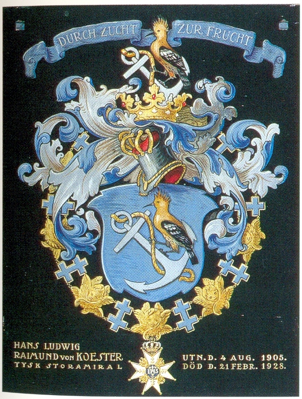 Vapnet för Hans Ludwig Raimund von Koester (1844-1928) den förste tyske storamiralen 1905. Generalinspektör för flottan 1899, chef för den akriva slagflottan 1903-1905. Erhöll Serafimerorden i samband med kejsar Wilhelm II:s flottbesök i Gävle.