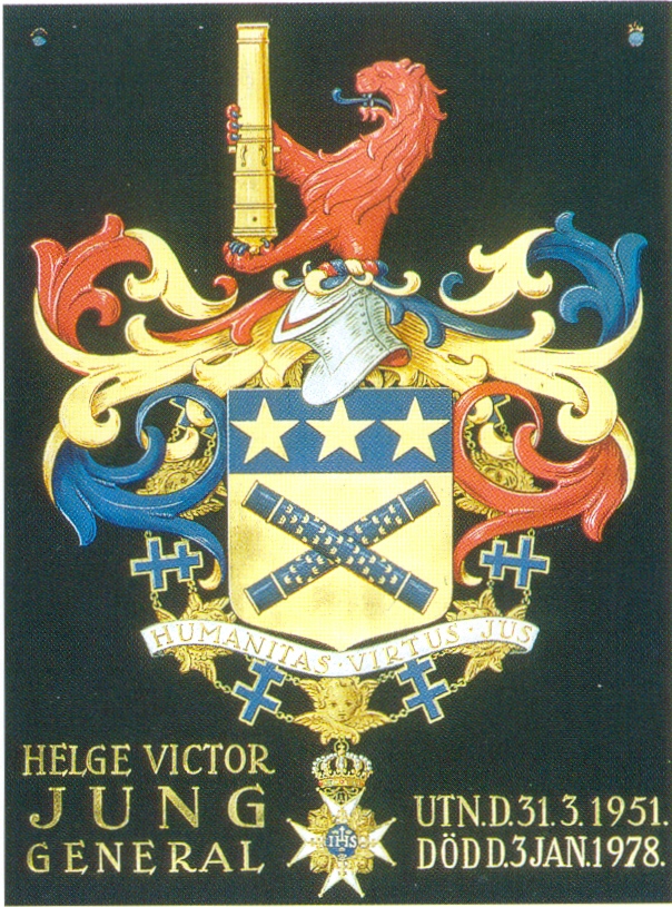 General Helge Jung (1886-1978), ÖB 1944-1951. Kommandostavarna och stjärnorna symboliserar den militära graden och positionen som ÖB.