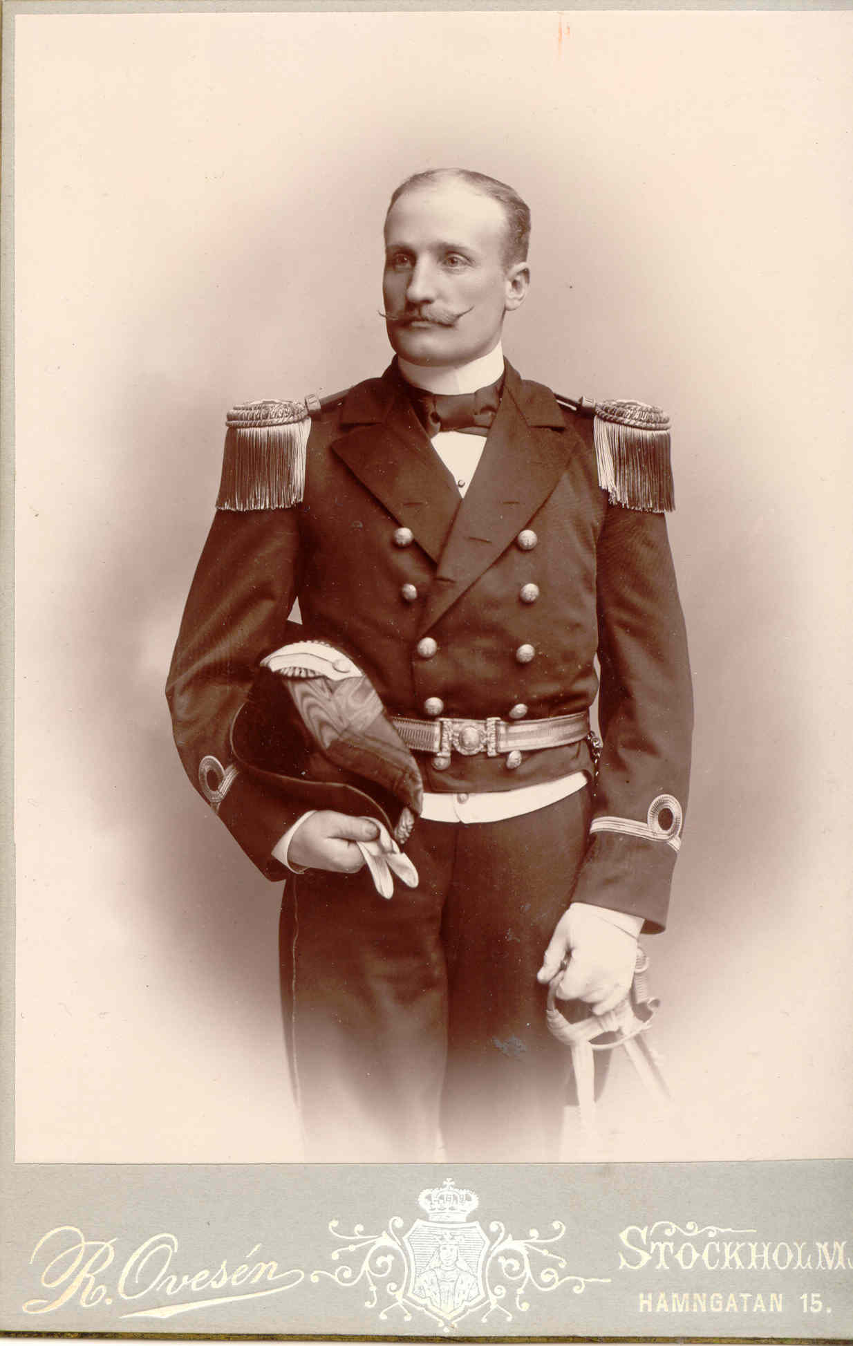 Den enkla guldgalonen med ''kringla'' betecknade (vid den tiden) en Underlöjtnant i svenska flottan. Bilden visar mannen i Paraduniform, vilken kanske då kompletterades med de ''axelepåletter med buljoner'' han bär.