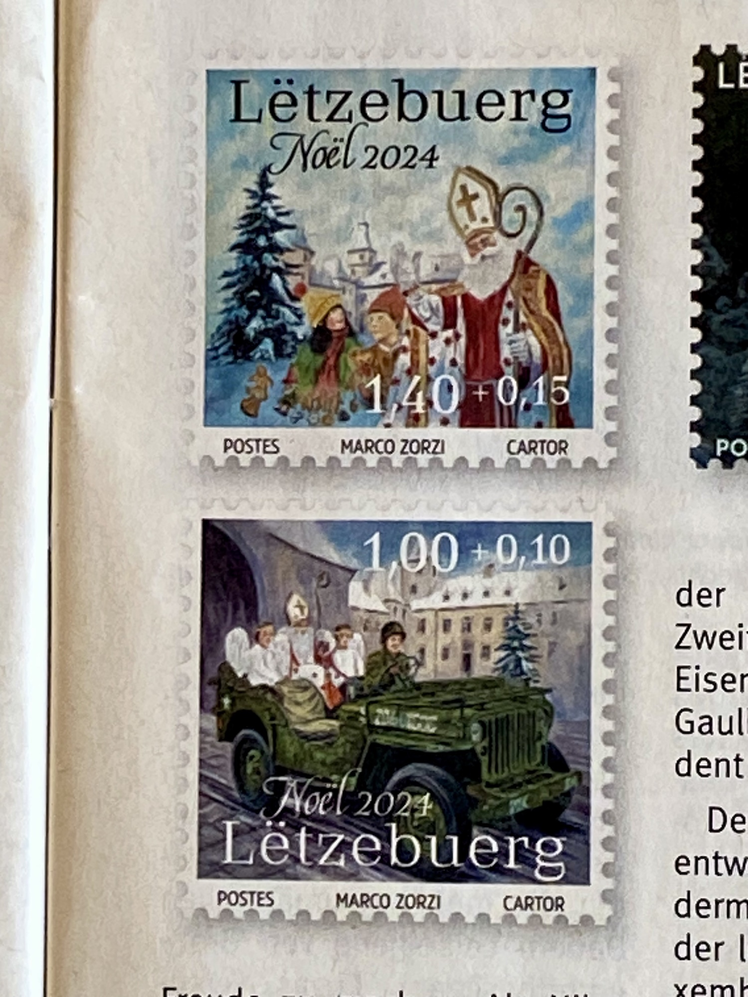 The issue of end-of-year stamps also has a charitable aim: for each Christmas stamp sold, POST Luxembourg pays 10 or 15 euro cents to the Œuvre Nationale de Secours Grande-Duchesse Charlotte.