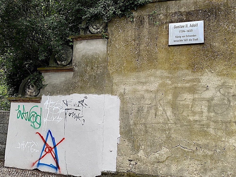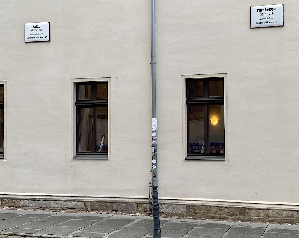 Alls ingen dålig gissning, Markus! Gustav II Adolf var faktiskt i samma stad, en plakett lite längre nedåt gatan ger oss den informationen...