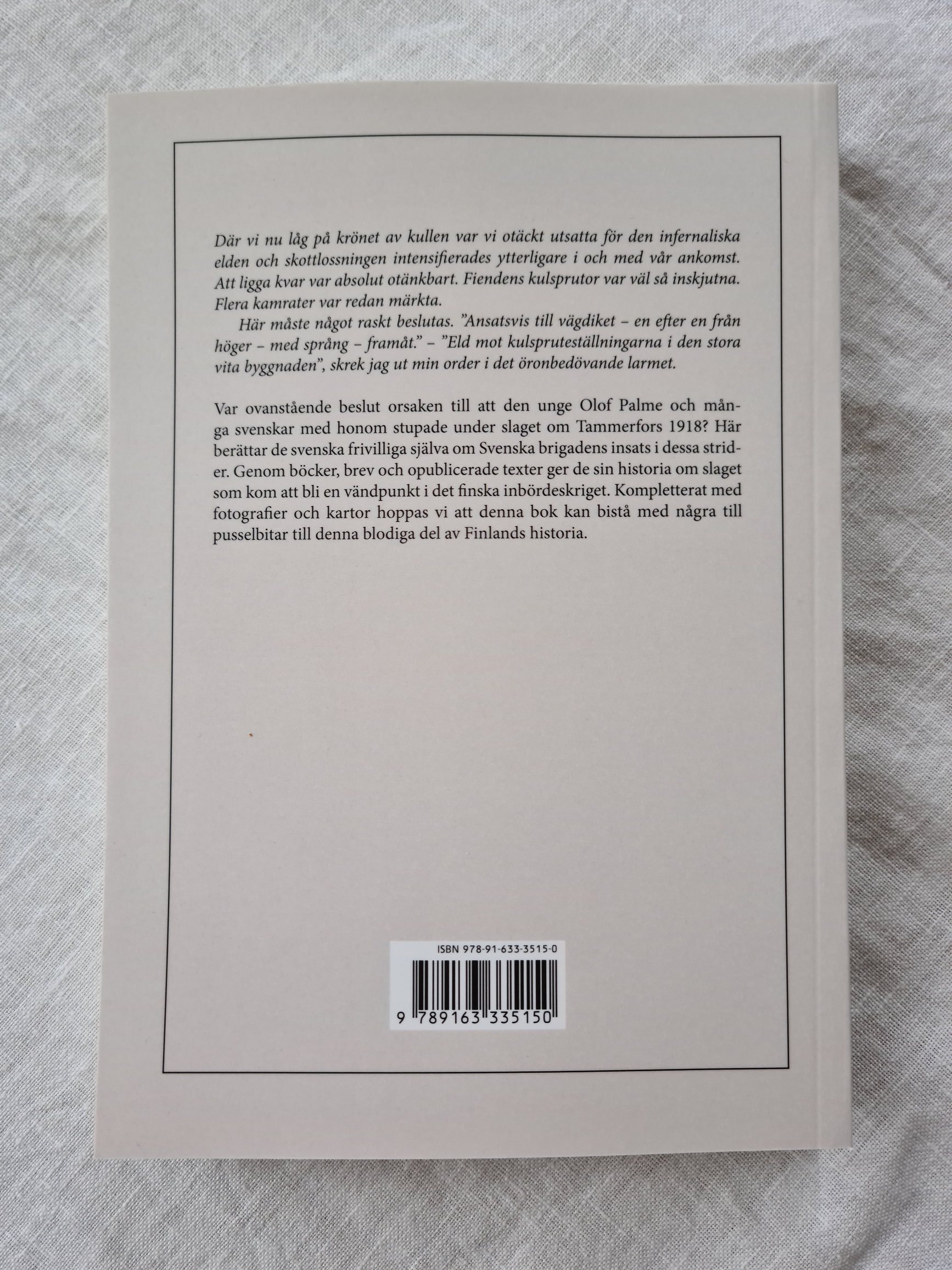 Var ovanstående beslut orsaken till att den unge Olof Palme och många svenskar med honom stupade under slaget om Tammerfors 1918? Här berättar de svenska frivilliga själva om Svenska brigadens insats i dessa strider. Genom böcker, brev och opublicerade texter ger de sin historia om slaget som kom att bli en vändpunkt i det finska inbördeskriget. Kompletterat med fotografier och kartor hoppas vi att denna bok kan bistå med några till pusselbitar till denna blodiga del av Finlands historia.