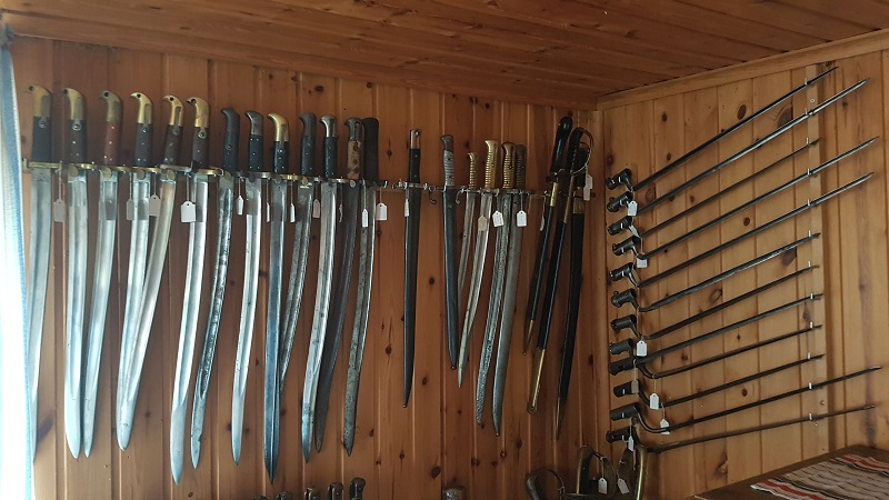 Jag har bara en m/1899 Infanteriofficerssabel, någon kopia samt en bajonett till ett 1815 och ett 1867 Armégevär med tillhörande byssa. Min AK bajonett gav jag bort, igen.