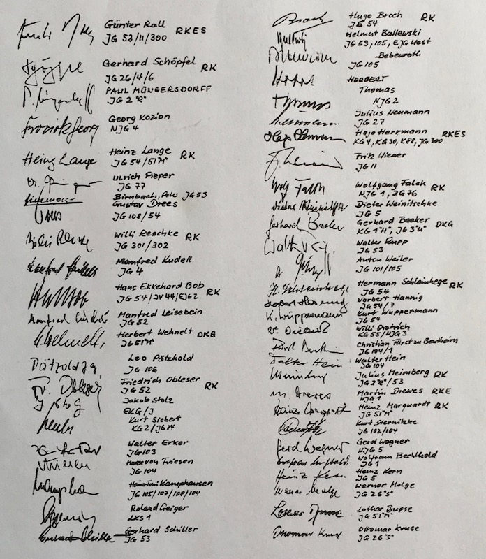 Vad man också vet, ett okänt antal hade avsagt sig all kontakt med allt vad som gällde andra världskriget, och önskade ingen kontakt med "Ehemalige", och de skulle inte heller tänka sig att ge ifrån sig autogram på detta sättet. Dessutom, ett stort urval av 2 VK-piloter som fortfarande var i livet fanns ej i början av 2000-talet.