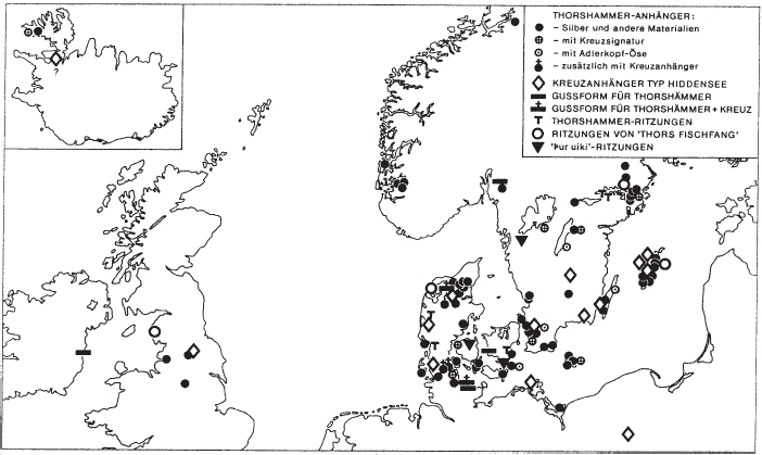 General distribution of Thor’s hammers (Wamers 1999).