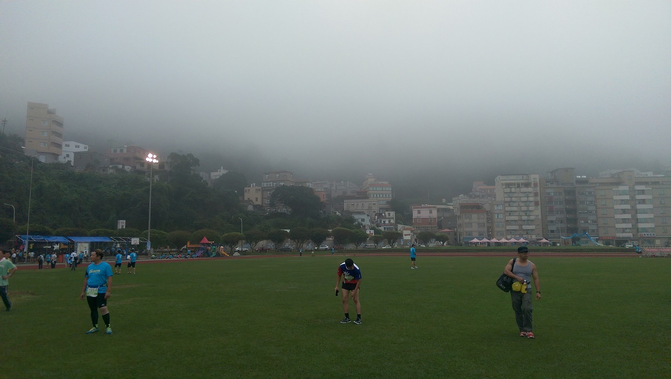 Så efter en kort busstur nådde vi fram till idrottsanläggning där starten för maratonet skulle vara. Det var dimmigt på morgonen och och solen skulle inte visa sig på hela dagen (lyckades dock få en ordentlig solbränna ändå). Vilket i för sig var en fördel då löparna slapp springa i den stekande solen. Dock var det 25C och 95% luftfuktighet, kände mig inte avundsjuk på de som skulle springa.