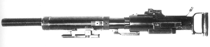 Vi drar det inte i nån längre långbänk. Det är en Slostin kulspruta. En gasomladdad kulspruta med hög momentan eldhastighet. Den hade låg tillförlitlighet och ansågs onödigt komplicerad så det blev ingen serieproduktion. men ett bar exempel på hur lovande tekniklösningar inte antas pga bristande intresse vid krigsslut.