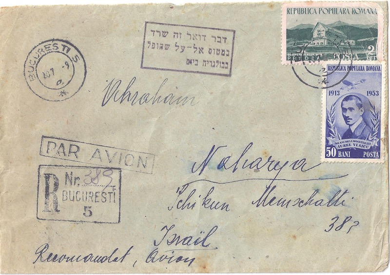 Ett registrerat brev från Bukarest till Naharya (Nahariya) - Israel......??????