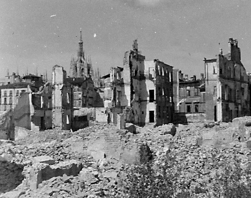 Fullträff! Augsburg i februari 1944 - "Big Week", först amerikanska bombplan, strax efter engelska - Messerschmitt och MAN-Werke var målen men svårt träffad blev också Augsburgs centrala "Altstadt". Det blev många hemlösa de dagarna som grävde gravar för andra...