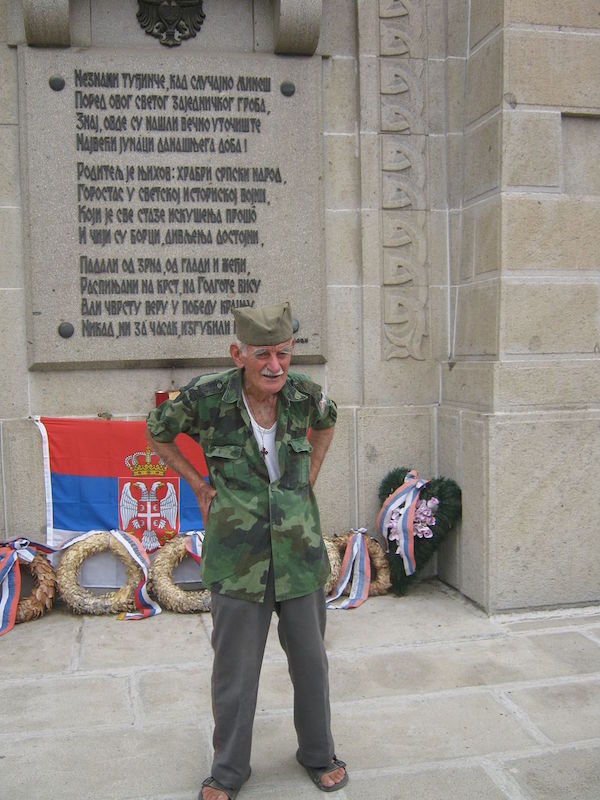 Vi är framme, 4 km utanför stadens centrum, hettan slår hårt, glömt vattenflaskan på rummet. "Serbisk Militär Kyrkogård" hälsar välkommen...