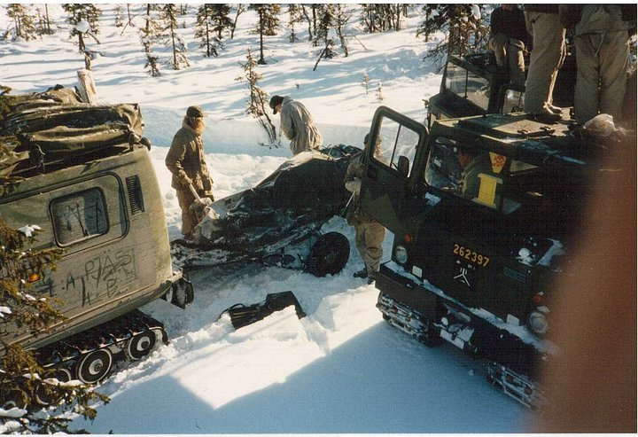 Vår pluton utsågs till att belastningstesta BV206 i skarp användning - detta för att vi dels hade 625 kg GRK-vagn efter bandvagnarna och för att vi nu skulle möta djup snö, svår terräng och frånvaro av MILO-verkstad...