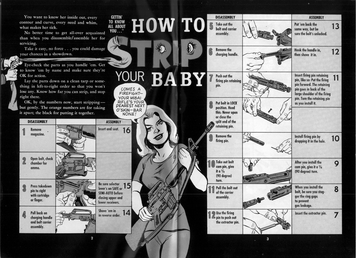 Bland annat illustrerade han en soldat manual på 60-talet för det amerikanska M16- geväret.