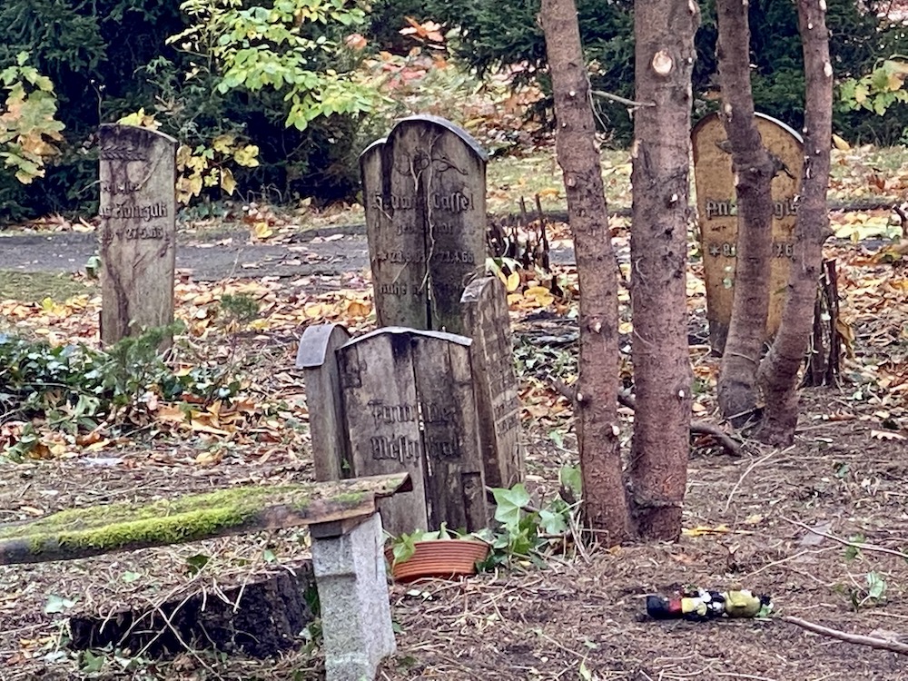 Man kan fundera lite vad som fanns kvar efter nazisternas rivningar 1935..? Även efter 1990 kan man tänka sig att kyrkogården blev utsatt för sabotage av hämndlystna antikommunister?