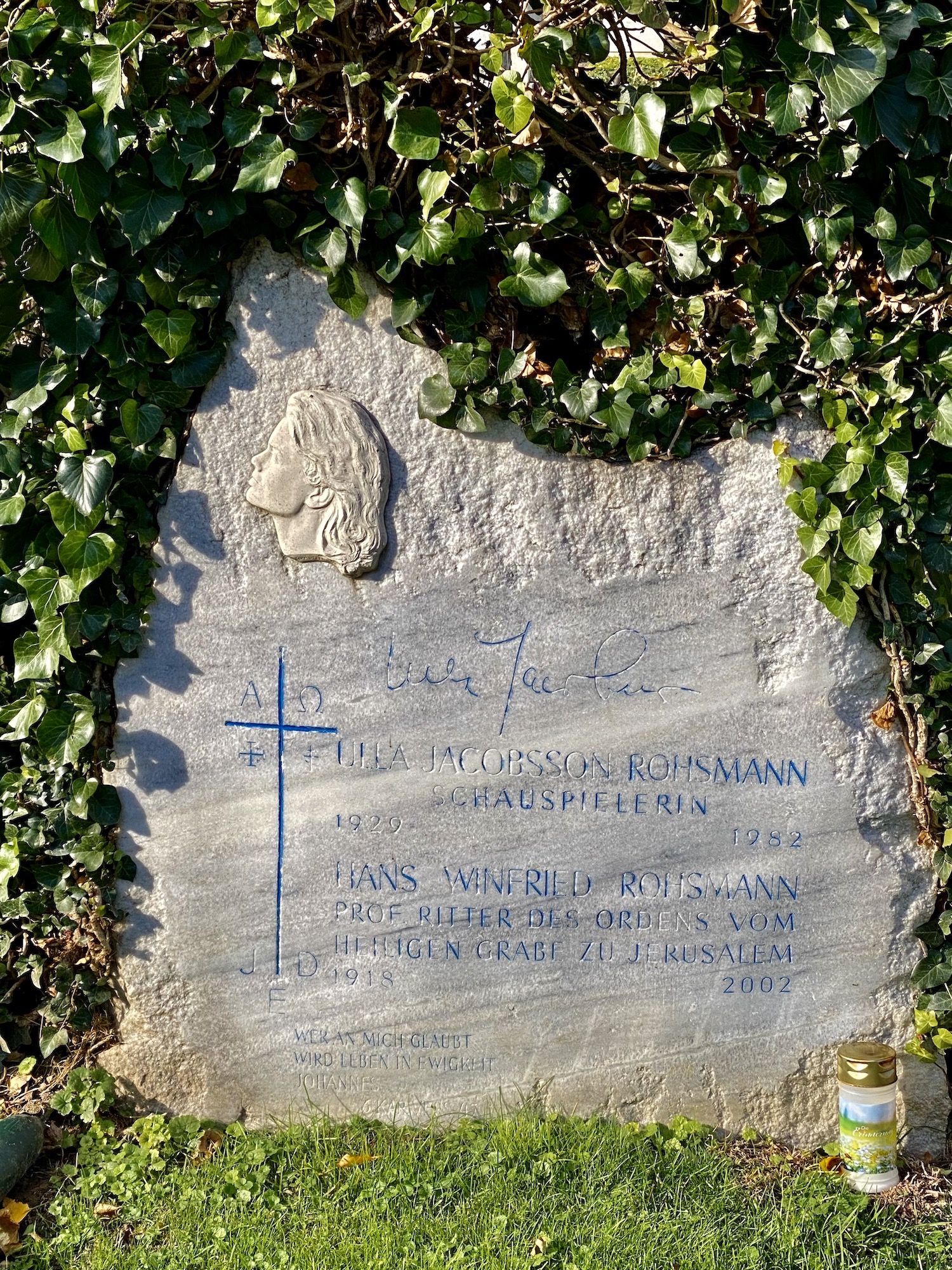 Och vän av ordning undrar naturligtvis vad vackra Jacobsson har att göra i den här begravningstråden, Jo, jag var i förra veckan ute vid Zentralfriedhof i Wien - ni vet där alla Promis vilar ut efter jäktiga livsdagar, Beethoven et al - och, se där, i skådespelaravdelningen hittar vi vår svenska Ulla med sin sista man, en österrikare...