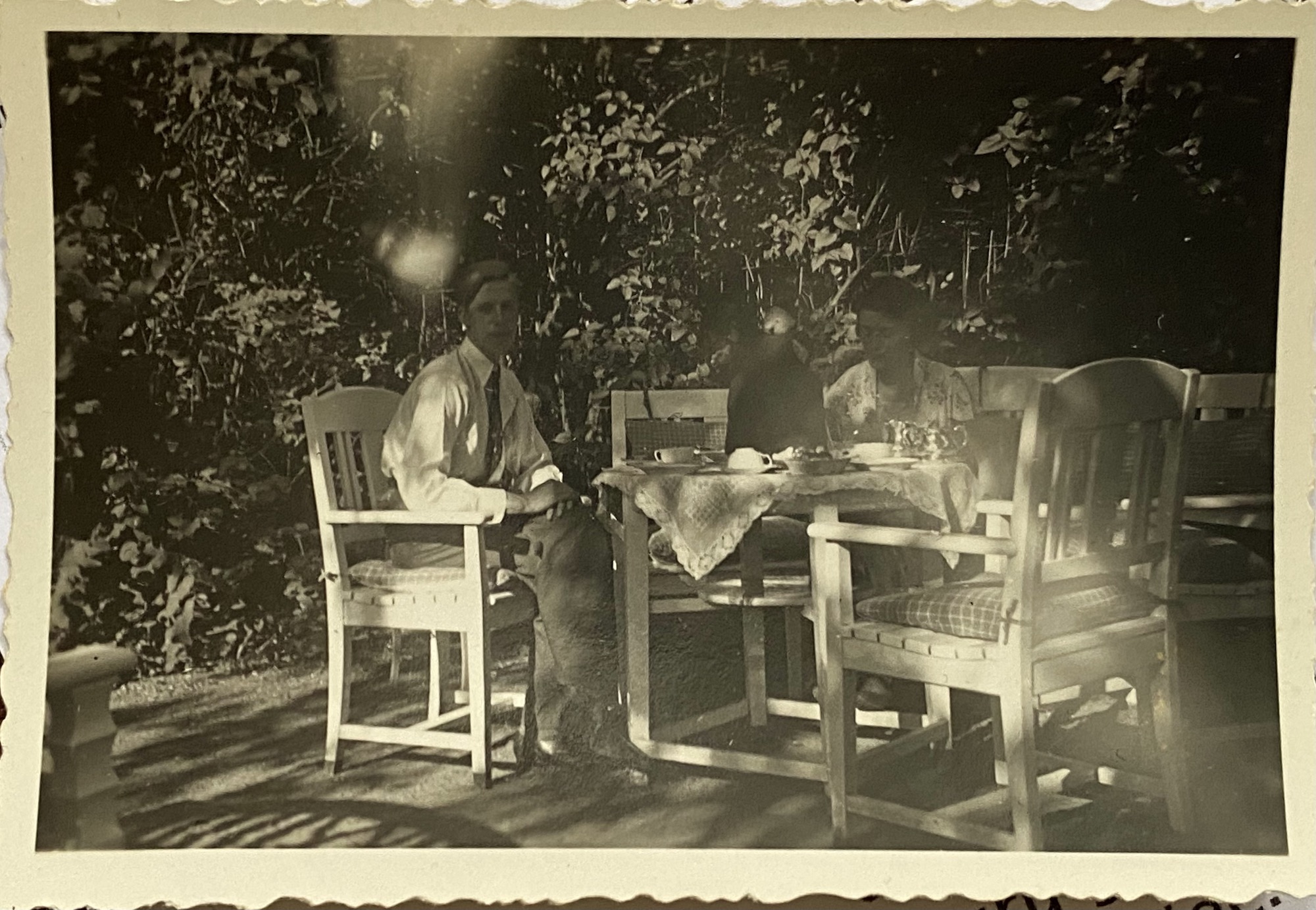 Att Lars H. inte var i lägret som "förbrytare" kan vi gott anta, för under pingsten var han på kortbesök hemmavid. Så tyder jag det här något mörka fotot som låg i ett brev, på baksidan skrivet: pingstmåndag 5.6.33. För det är väl Lars, med ?...