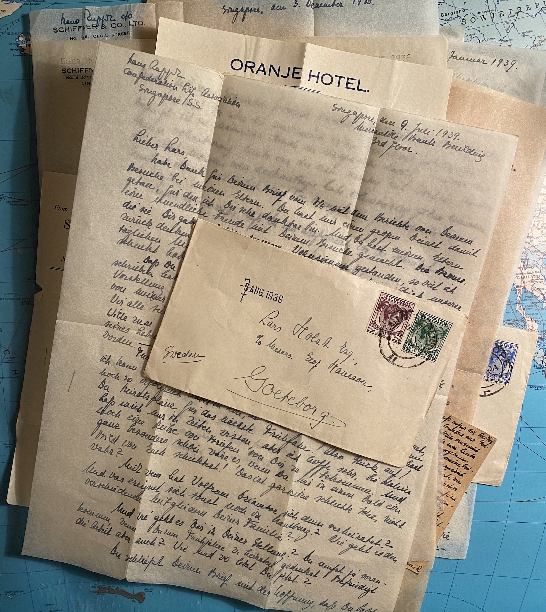 I maj 1936 får Lars Holst ett brev från Singapore, Straits Settlements. Hans Ruppin, en arbetskamrat från Lager Rickling tre år tidigare, skriver till Lars i Hamburg och senare Sverige. Han arbetar i Singapore i en engelsk(?) handelsfirma, "Schiffner & Co".