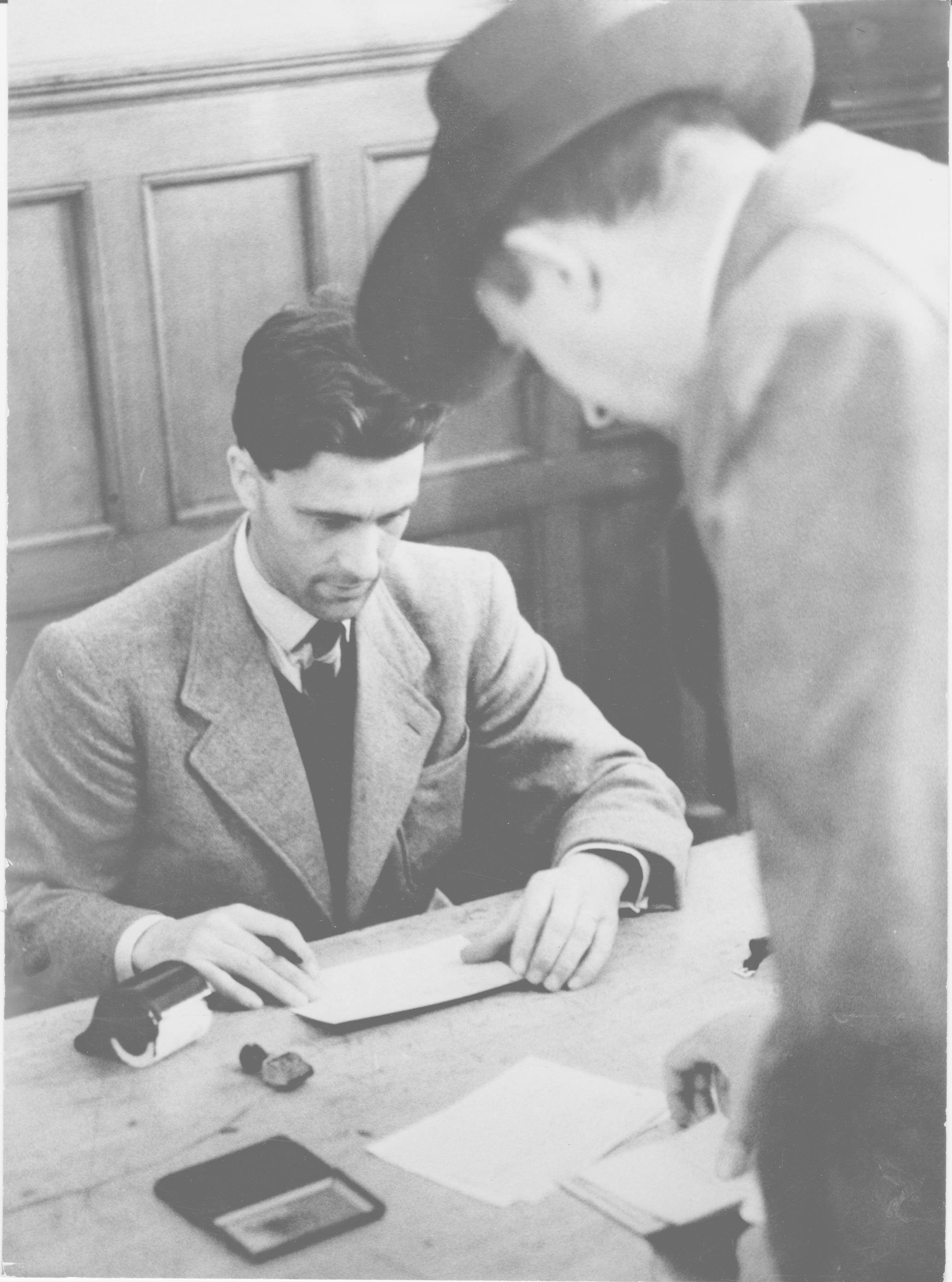 Min farfar var ordförande i svenska föreningen i Hamburg. Även Gustaf var, såklart, medlem och hjälpte till nu i svåra tider. Här syns han på en bild från 1944, på vars baksida det står "Livsmedelsfördelning i Svenska Kyrkans läsrum 5 juni 1944".