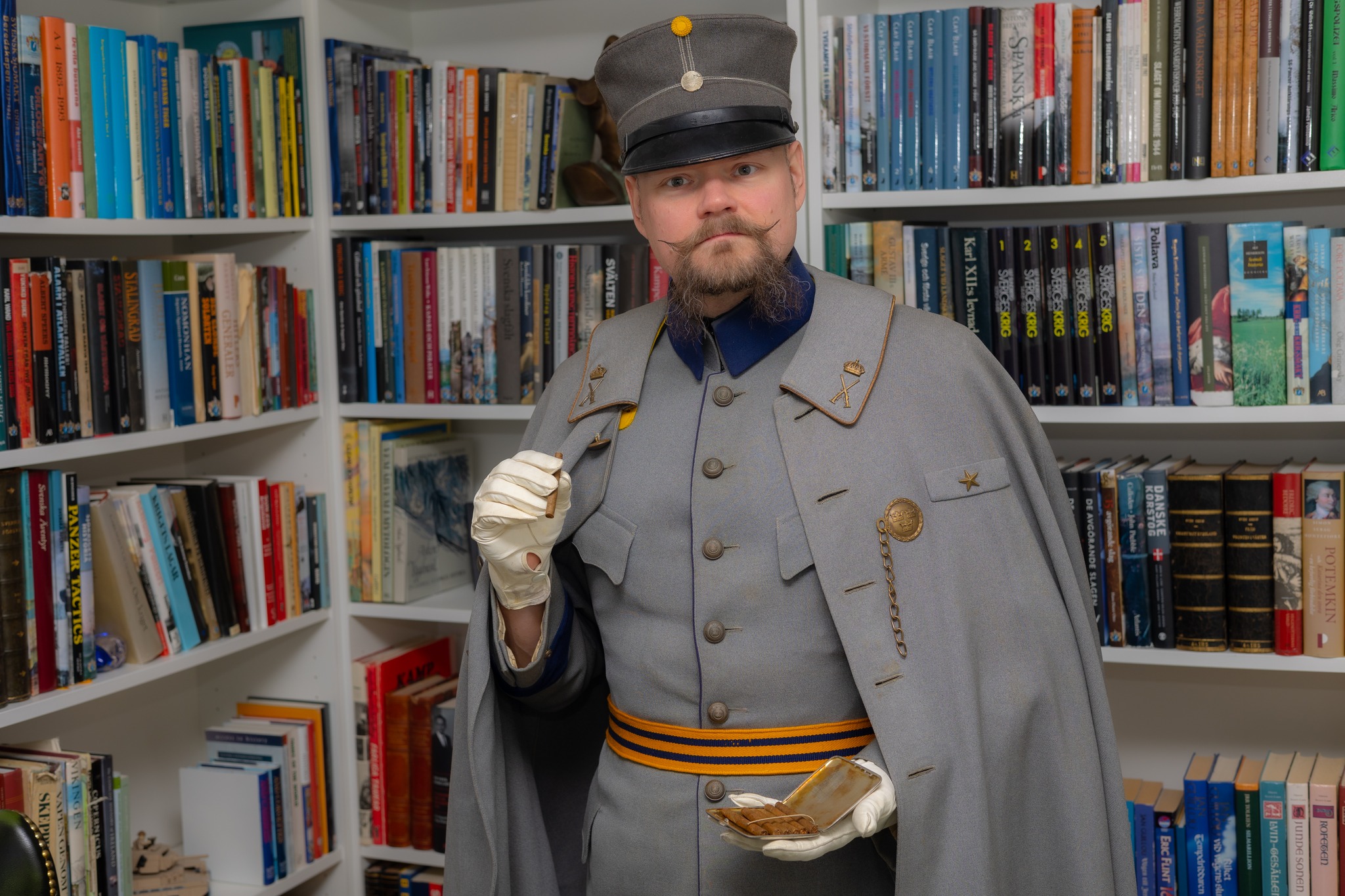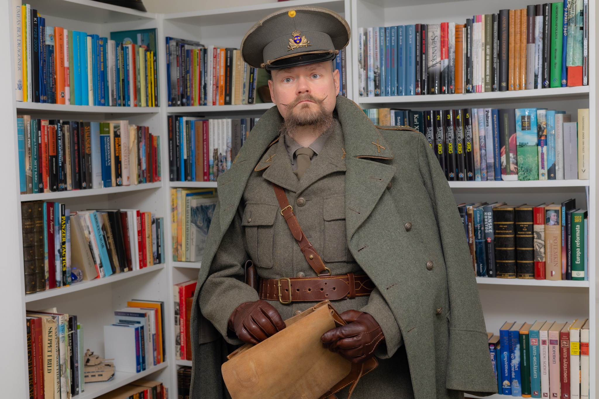 När man väntar på att folk ska ha fel om historia på Internet. Uniform m/1873 för kapten vid A4 Norrlands Artilleri. Med en officerssabel m/1893, samma uniform som ovan. Glöm värnpliktsdebatten, alla indelta soldater sover, låt oss ta en punsch på Schweizeriet! Samma uniform som ovan. Hvad mena ni karl, att norrmännen göra motstånd? Invasionen av Norge 1905. Uniform m/1886 för major vid I7 Södra Skånska regementet, med officerskoppel och hölster m/1887 samt regnskydd för mössan. Ah, det är 1925 och varken Sovjet eller Tyskland är ett hot. Den eviga fredens tid har kommit. Uniform m/10-23 med regnkrage m/11 och mössa m/23. Gränsvakt i Värmland slutet av april 1940. Varför fick finnarna 45 miljoner av våra patroner och jag inga? Uniform m/10-23 med hatt m/10 för fänrik vid T1. Så han säger att von Schell sänt 25. Panzer-division över gränsen, i jämtländska fjällen? Jag tror inte det kommer gå så bra för honom. Uniform m/39 med regnskydd på mössan och hölster m/40 för kapten vid I12 Kalmar-Jönköpings regemente.