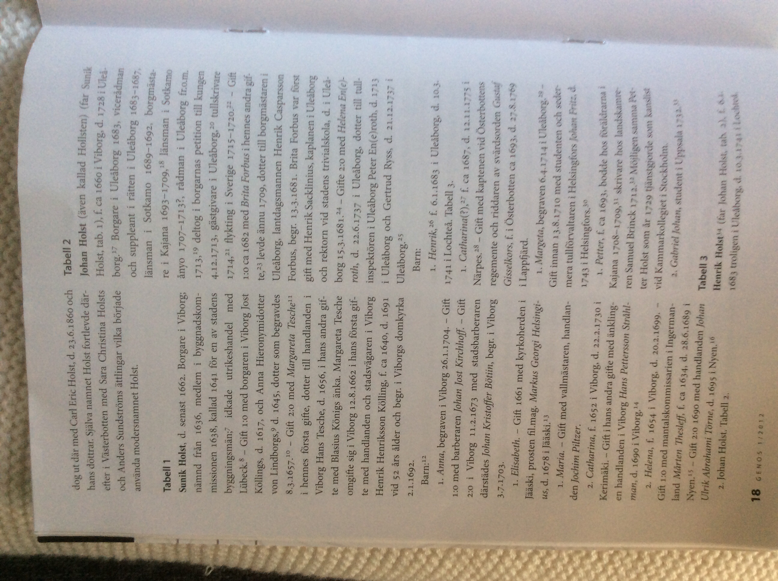 Jag kan tänka mig att Holsten från början är plural dativ, den Holsten = holstarnas land. Folkgruppen lär någon gång i historien kallats för holseter, betydande ungefär "skogsbo". På plattyska betyder ju "holst" trä. (Var så god att skämta, Hans!) Mina förfäder dyker upp tidigast på gravstenar i nuvarande Schleswieg i slutet av 1400-talet, för 14 generationer sedan. När de lämnade skogarna i Holsten för att bli slättbönder vet vi alltså inte men vi vet när de senast gjorde det och vi vet vilken gård de bebodde. Den ligger med gräns mot Holstein i byn Koldenbüttel i dagens Schleswieg.