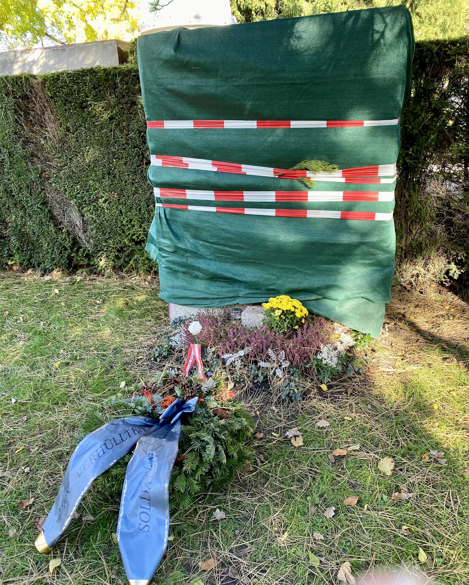 Vad det stod på rosetterna? "Wir gedenken - der Wiener Aeroclub" och "Den verhüllten Soldaten" (Den överhöljda/dolda soldaten)...!