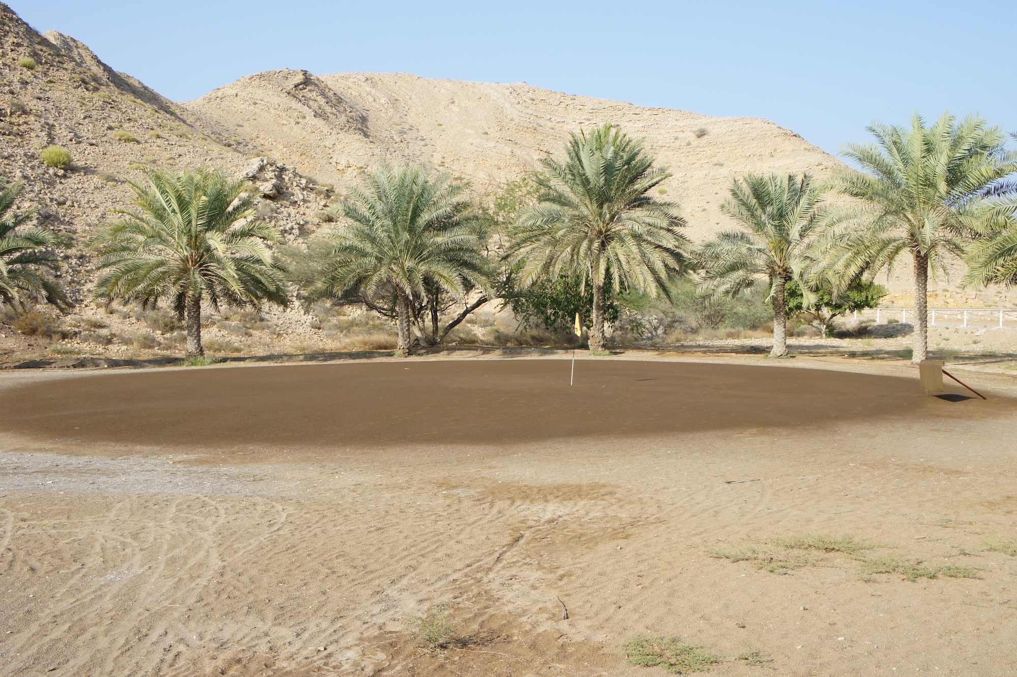 Mer sand än gräs, inte ovanligt i Oman! Spelar inte själv - men ja, för att förtydliga, där står väl en typisk golfskylt...
