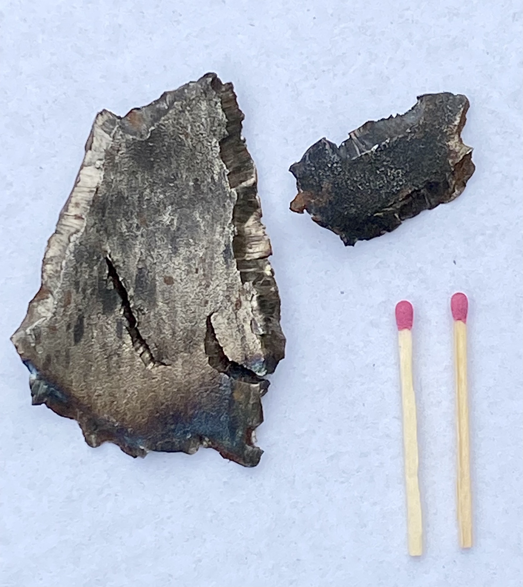 Och...två bombsplitter! Glänser i blått och grått och svart. 66 och 12 gram tunga.