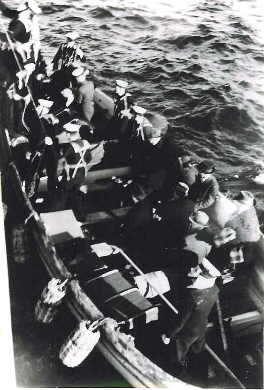 Som med våld avför 21 civila tyska sjömän från ASAMA MARU och tar ombord dem på kryssaren