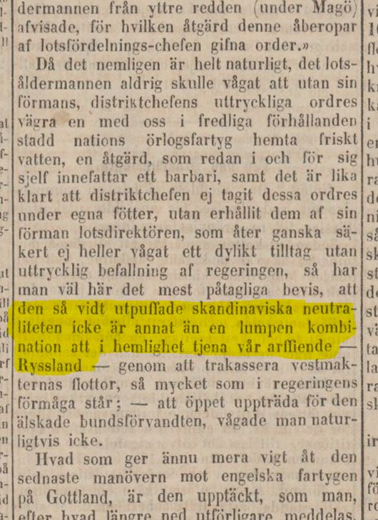 Det var fara att vi skulle hamnat på rysk sida i Krimkriget pga neutralitetskränkningar från västmakternas sida. Underlåtenhet att upprätthålla respekten från dem vi vill vara vänner med kan ha oönskade konsekvenser.Anders G skrev:Sverige var nästan med i Krimkriget.
