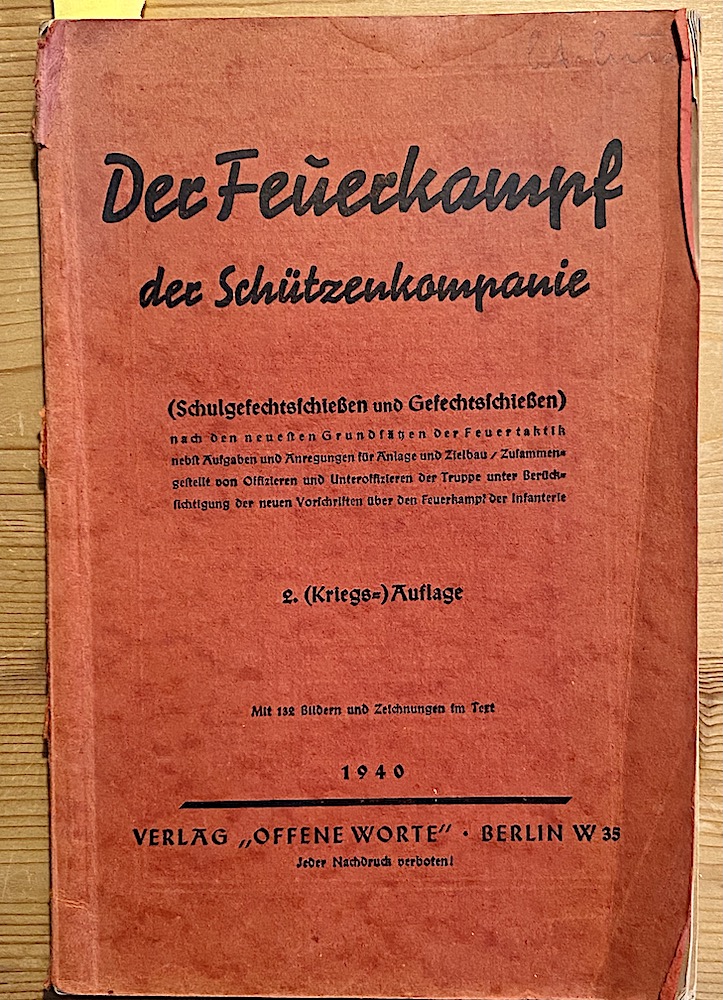 Apropå uniformer och då särskilt huvudbonader. Hittade den här tyska instruktionsboken, att skjuta i krig, frikostigt illustrerad. Första upplagan kom 1939, men den jag har kom ett år senare, med, som det står, de samlade erfarenheterna från det polska fälttåget...