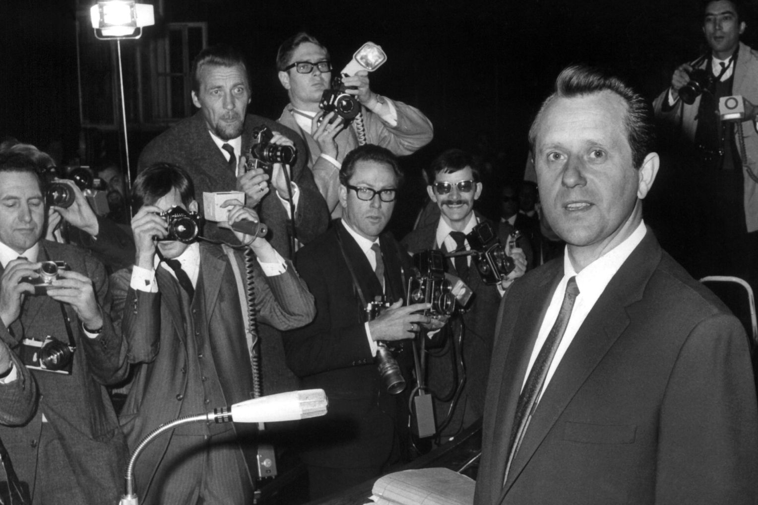 "Karl-Heinz Kurras vor der Verteidigerbank auf einem Stuhl sitzend"
