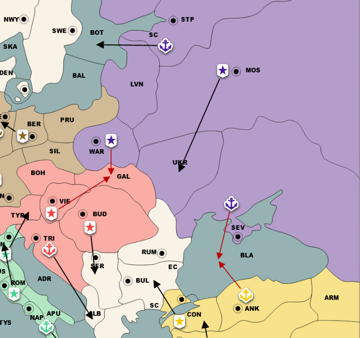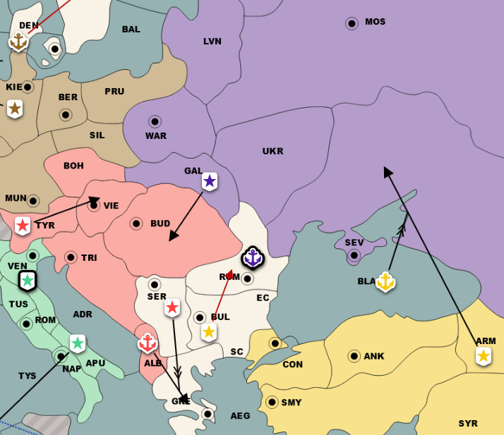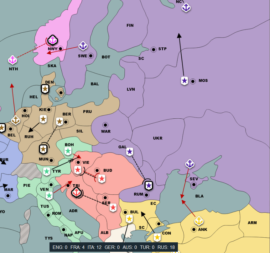 AUS: I've gotten multiple messages from both Turkey and Russia so far saying that Italy is planning on stabbing me. You're absolutely right, and I will definitely be covering myself at Trieste, but it would help me if I could confirm with someone that they are at the very least talking to him.