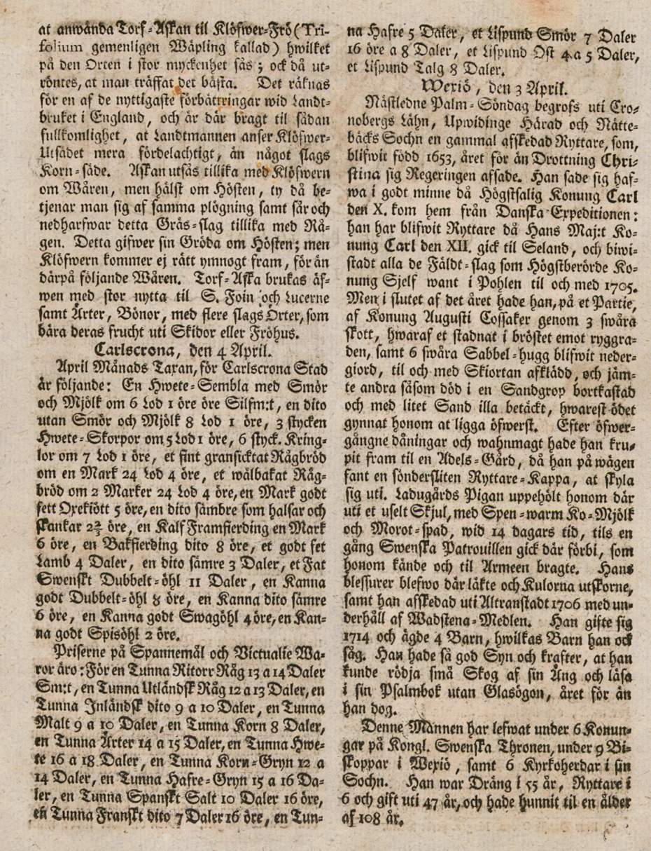En annan långlivad man: Lars Ericsson Boman (1680-1792), ryttare vid Livregementet till häst och tydligen vid full krigsmannavigör ännu vid Pommerska krigets utbrott (då han med god marginal hade passerat 75). Som synes fortsatte han efter fångenskap hos preussarna rentav sin lysande karriär vid ett annat regemente.