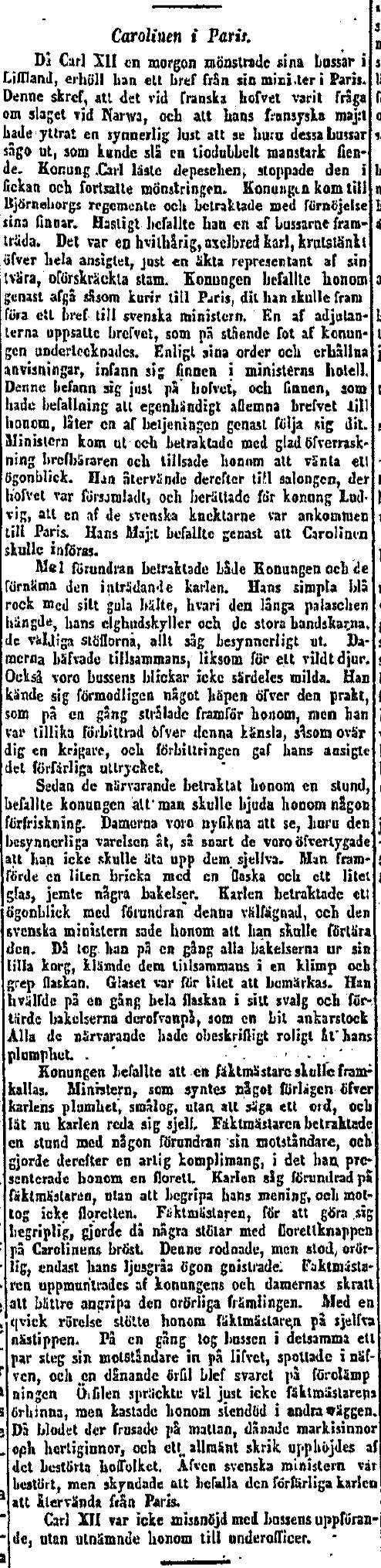 Det är ju f.ö. intressant att han kallas "avskedade husaren". Särskilt många sådana regementen fanns ju inte under 1700-talet och inga alls under Karl XII:s tid. Teoretiskt sätt skulle det alltså möjligen inte vara så besvärligt att spåra honom i generalmönsterrullor.