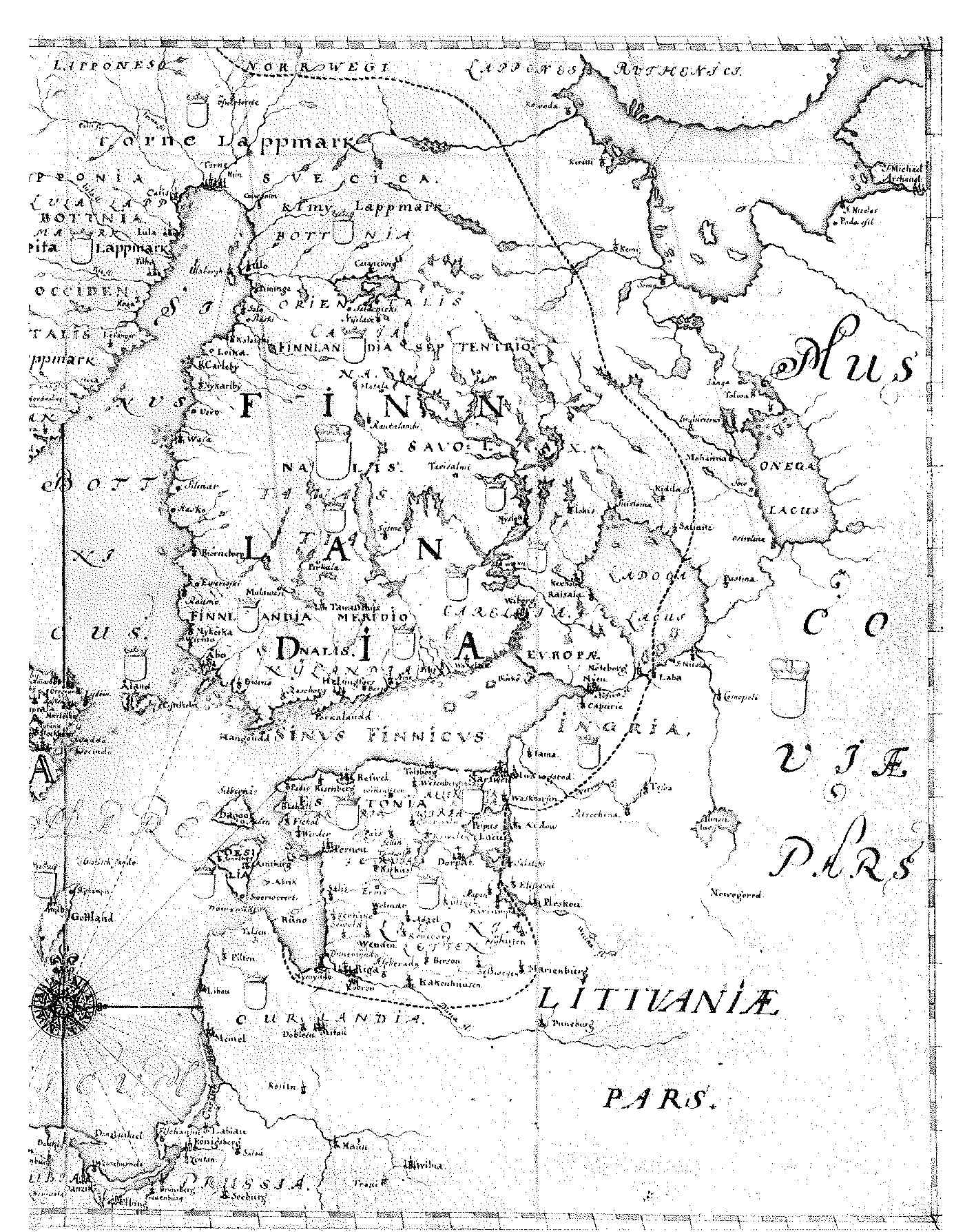 Ben skrev:Tolkningar av Nöteborgsfreden ligger nära till hands, men frågan är om ens de mest optimistiska svenska versionerna inkluderade halva Onega (som på dessa 1600-talskartor).